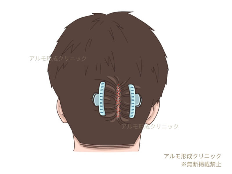 「アルモUn-SHAVEN法」は、刈り上げを全く行わず、採取するグラフトをハサミで独自の計算法によりランダムカット後、パンチによる採取を行います。